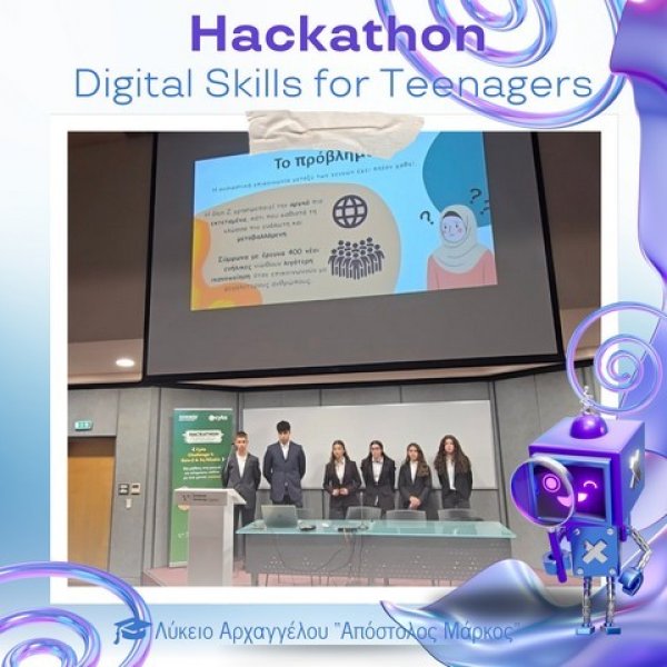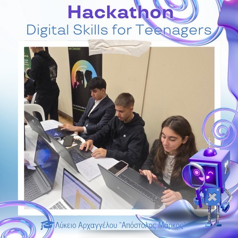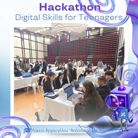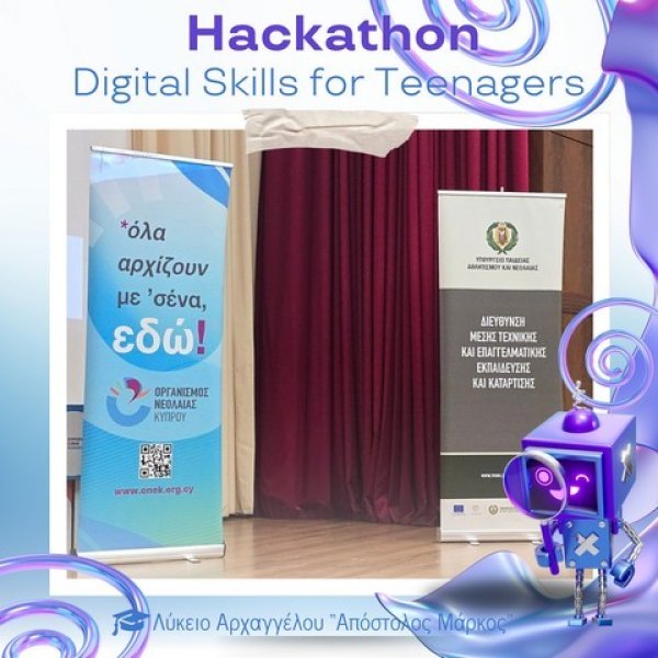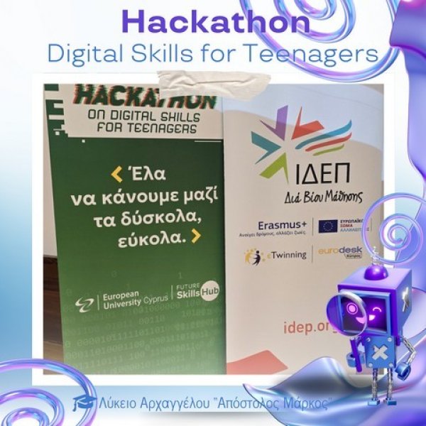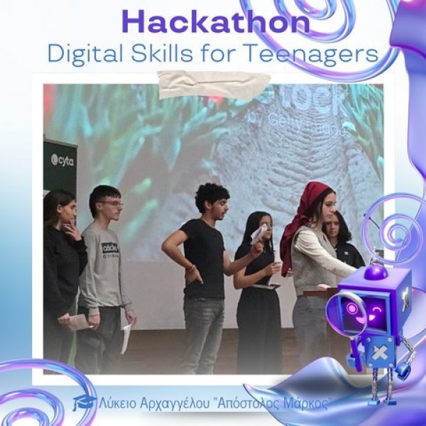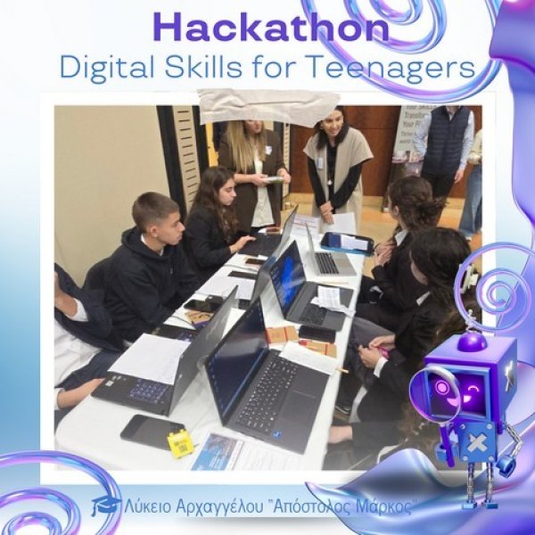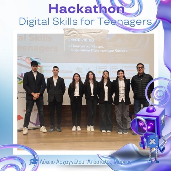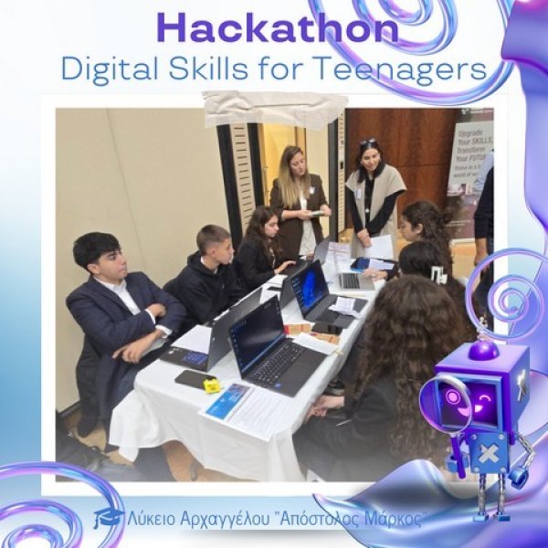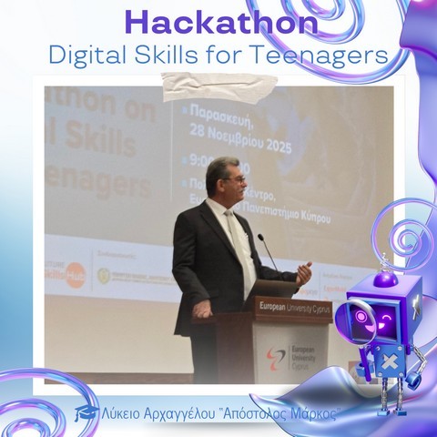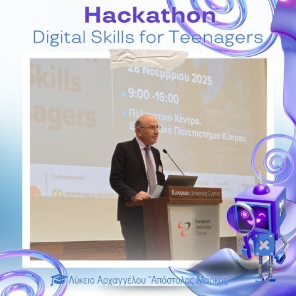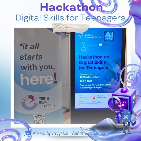 Στο Πολιτιστικό Κέντρο του Ευρωπαϊκού Πανεπιστημίου Κύπρου πραγματοποιήθηκε την Παρασκευή 28 Νοεμβρίου 2025 το καινοτόμο εργαστήρι «Hackathon – Digital Skills for Teenagers», στο πλαίσιο του AI Month 2025. Οι μαθητές και μαθήτριες του σχολείου μας είχαν την ευκαιρία να συμμετάσχουν σε μια ξεχωριστή εμπειρία μάθησης, δημιουργίας και συνεργασίας, εκπροσωπώντας επάξια το Λύκειό μας.