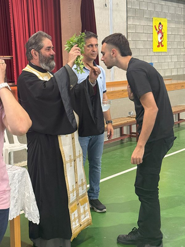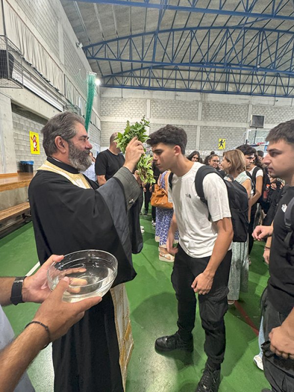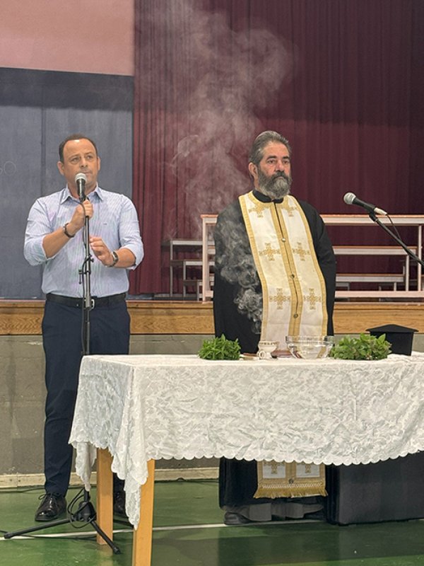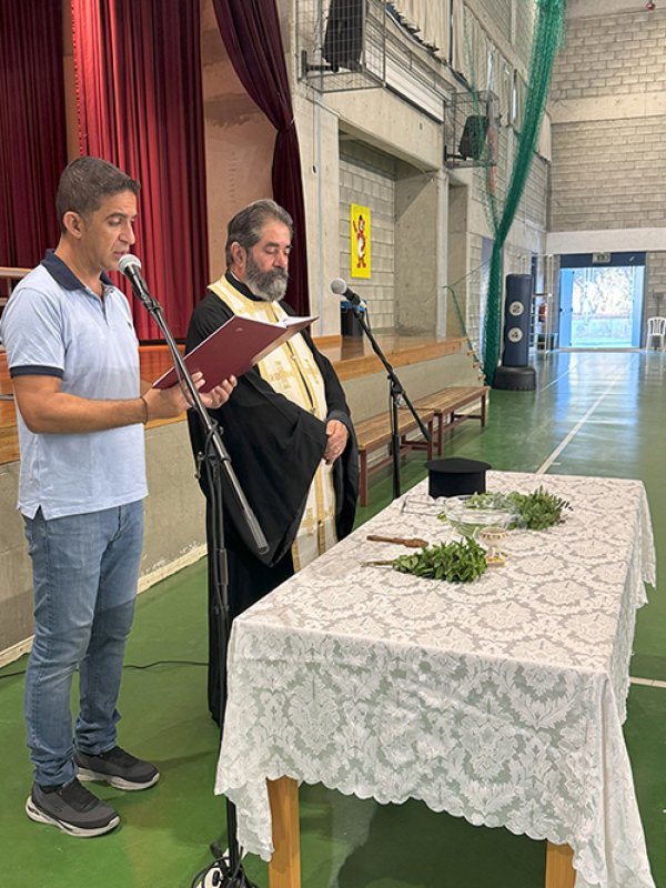 Τον Αγιασμό τέλεσε ο Πάτερ Παρασκευάς Παπαμιχαήλ, Πρωτοπρεσβύτερος του Ιερού Ναού Αποστόλου Μάρκου, ο οποίος ευχήθηκε σε μαθητές και εκπαιδευτικούς καλή, δημιουργική και ευλογημένη χρονιά.