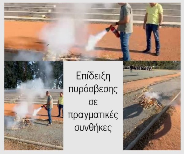 Ακολούθησε επίδειξη κατάσβεσης πυρκαγιάς με πυροσβεστήρα , όπου παρουσιάστηκε ο σωστός τρόπος χρήσης σε περίπτωση έκτακτης ανάγκης. Στη συνέχεια, ο Διευθυντής του σχολείου έδωσε σημαντικές οδηγίες σχετικά με την αντιμετώπιση σεισμικών φαινομένων και τη γενικότερη διαχείριση κρίσεων, τονίζοντας την αξία της ψυχραιμίας και της συνεργασίας .